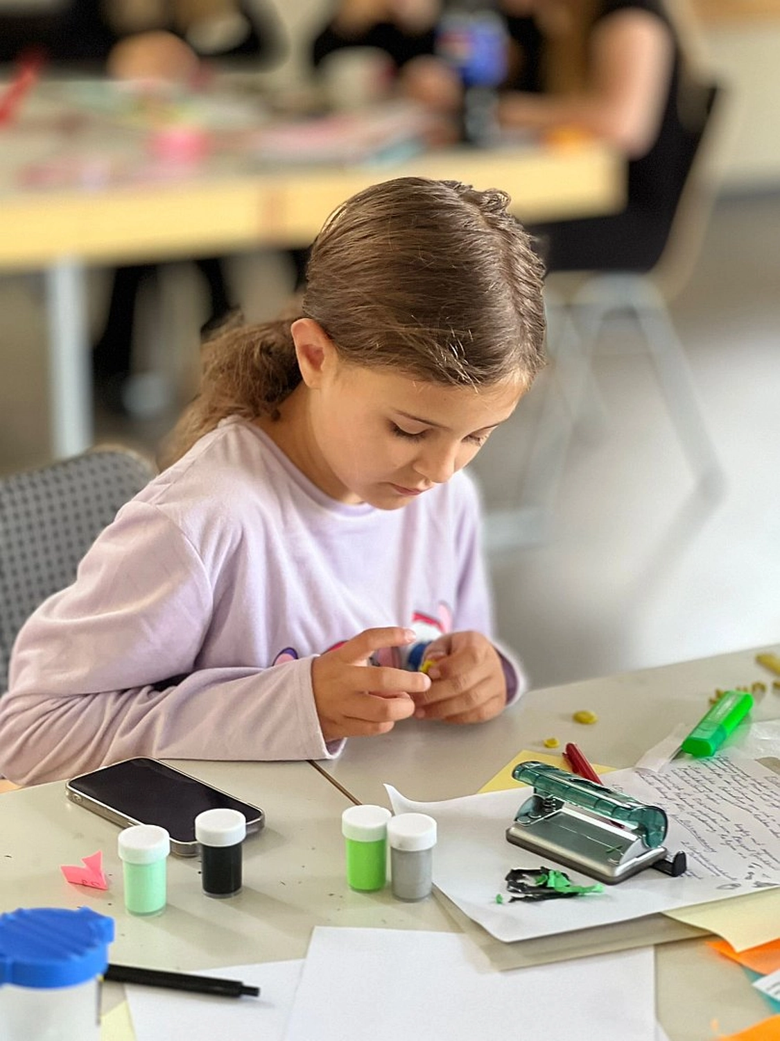 Auf dem Programm standen vielfältige sprachfördernde Angebote wie Sprachrätsel, Wörter-Memory und Geschichten-Puzzle. In interkulturellen Workshops erzählten die Kinder und Jugendlichen in Kleingruppen Geschichten aus ihren Herkunftsländern oder reflektierten in Tänzen Gemeinsamkeiten und Unterschiede ihrer Kulturen. Selbst gestaltete Freundschaftsbänder wurden getauscht, und in einer Upcycling-Werkstatt entstanden aus recycelten Materialien kleine Kunstwerke.